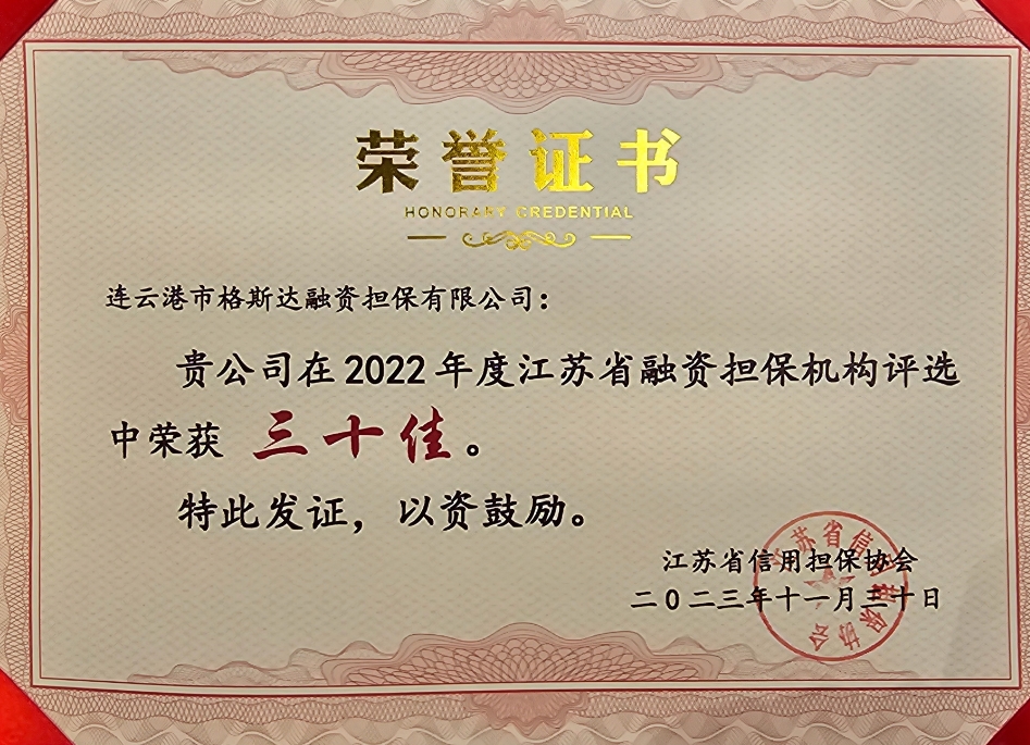 格斯達(dá)擔(dān)保公司入選省擔(dān)保機(jī)構(gòu)“三十佳”